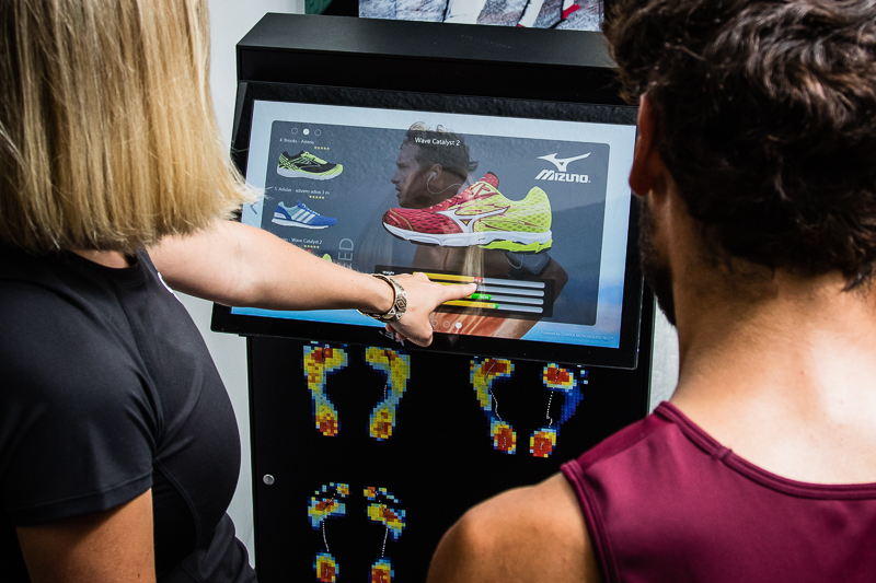 - Die KI-basierte Technologie erfasst im realen Bewegungsablauf deine Körperachsen und Gelenkposition und analysiert deren Veränderungen, während du in unserer Filiale einige Meter läufst.
